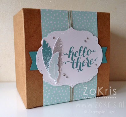 En dan heeft Stampin' Up! deze doosjes ook nog, ze zijn iets lager dan de andere Kraft doosjes, maar deze heeft een leuk doorkijkje ! In een verpakking zitten zes 'Decorative Window Gift Boxes' en die kosten 5,95.