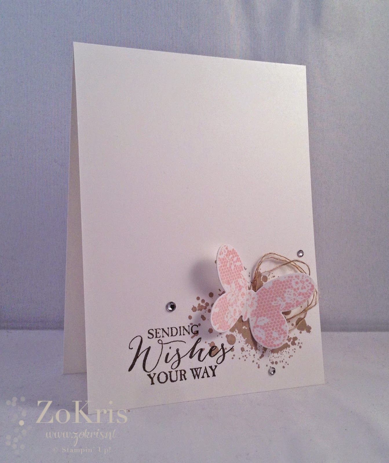 De Big Shot heeft overuren gemaakt. Om een Berry Basket in elkaar te kunnen zetten moet je namelijk twee keer de die met het cardstock door de machine halen. Toen bedacht ik me dat de Butterfly Thinlits wel leuk zouden staan op de basket. En later wilde ik toch ook nog een vlinder van vellum erop plakken. En zo'n stekertje uit de set From the Garden vond ik er ook wel bij passen... En dat keer 6, want de jongens hebben allebei drie juffen.
