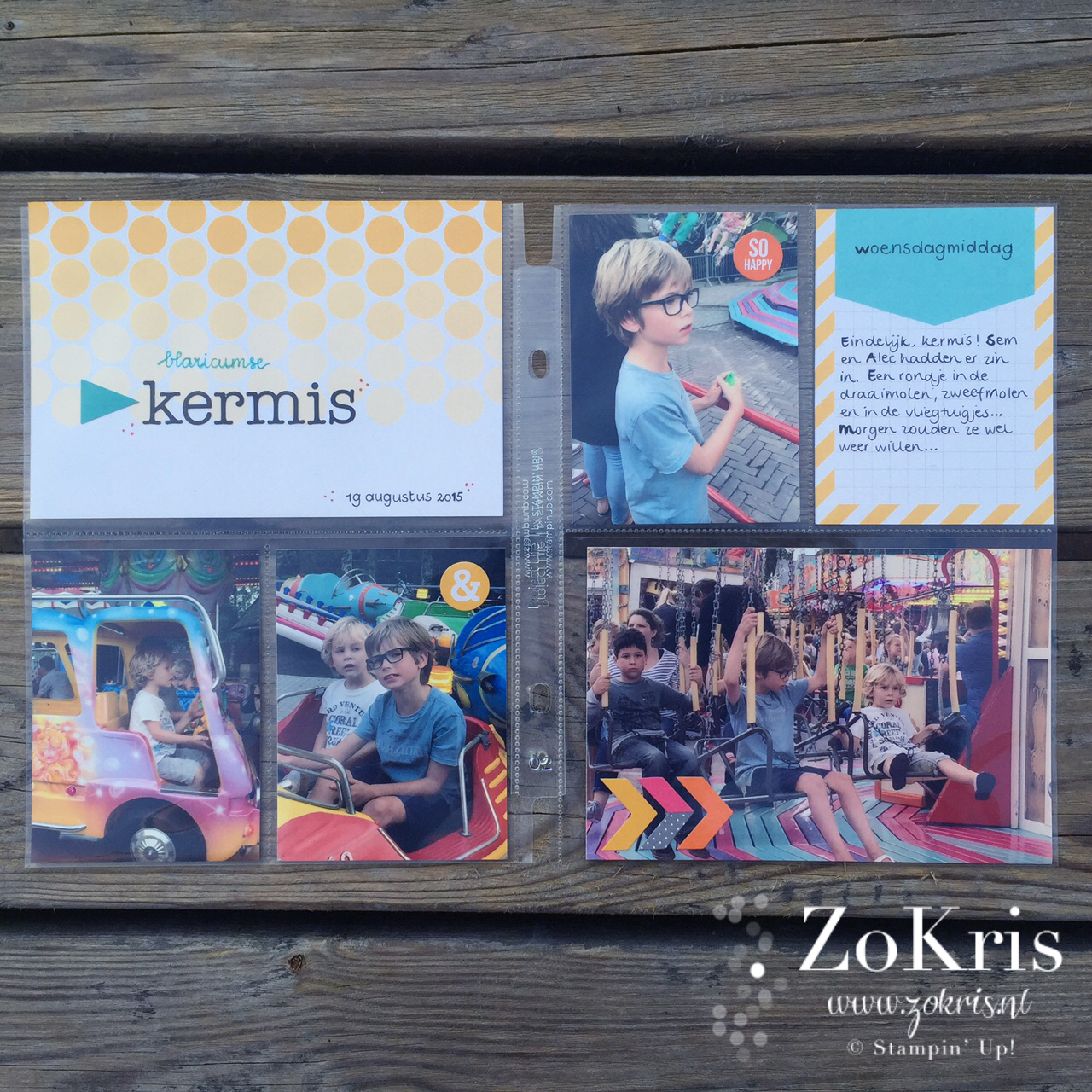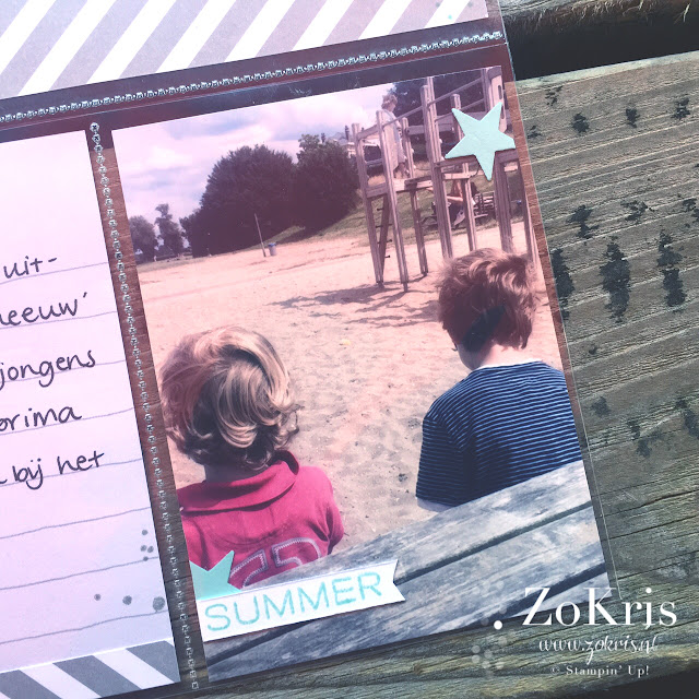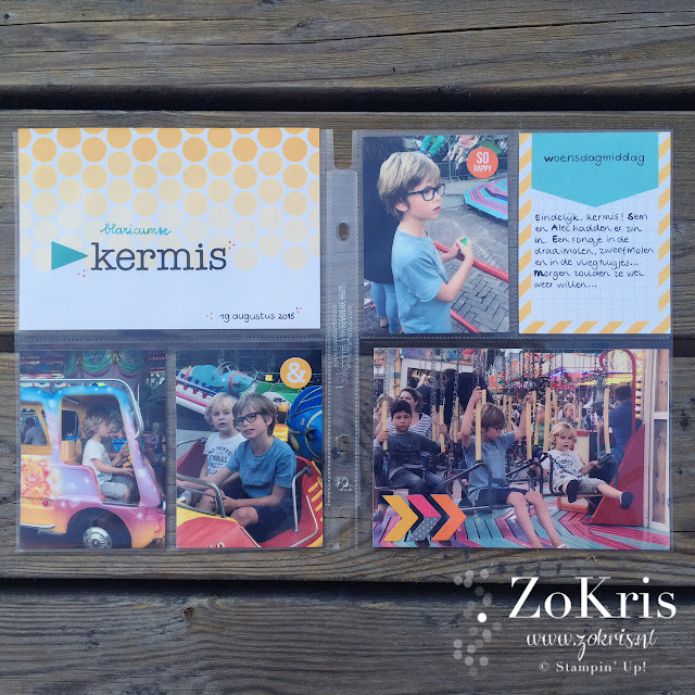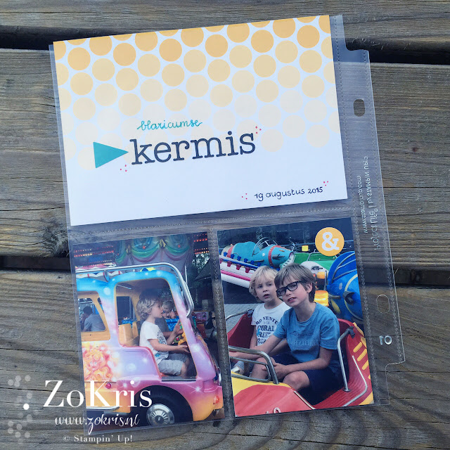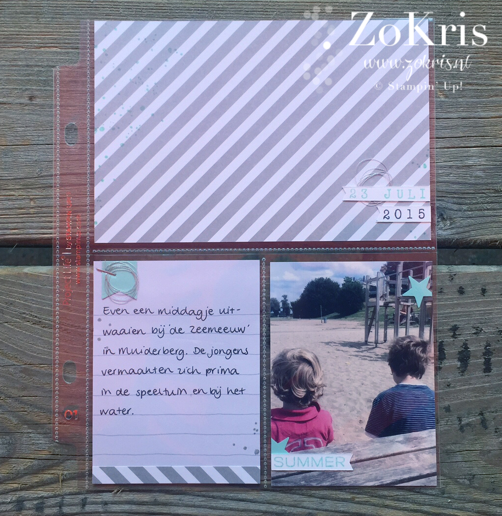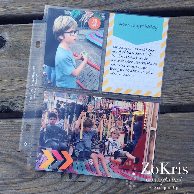 Zoals ik van de week al vermeldde heb ik enige tijd geleden wat PL producten aangeschaft. Stampin' Up! heeft een en ander te koop, waaronder albums, fotohoezen en Project Life kaartjes. Het handige van het gebruik van voorgedrukte kaartjes is dat je vrij snel klaar kan zijn met de pagina. Ideaal voor iedereen die zijn foto's leuk wil 'inplakken', maar er niet teveel tijd aan kwijt wil.
